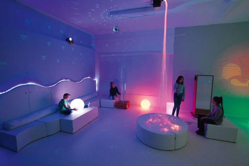 Comfortabele poefs in verschillende vormen en hoogtes. Ze zullen helpen bij het creëren van een rust- en ontspanningsruimte. Na installatie van het apparaat dat muziek of licht uitzendt kan het worden gebruikt als een plaats die zintuigen stimuleert en activeert. Gemaakt van foam, bedekt met duurzaam vinyl of PU, gemakkelijk schoon te houden.