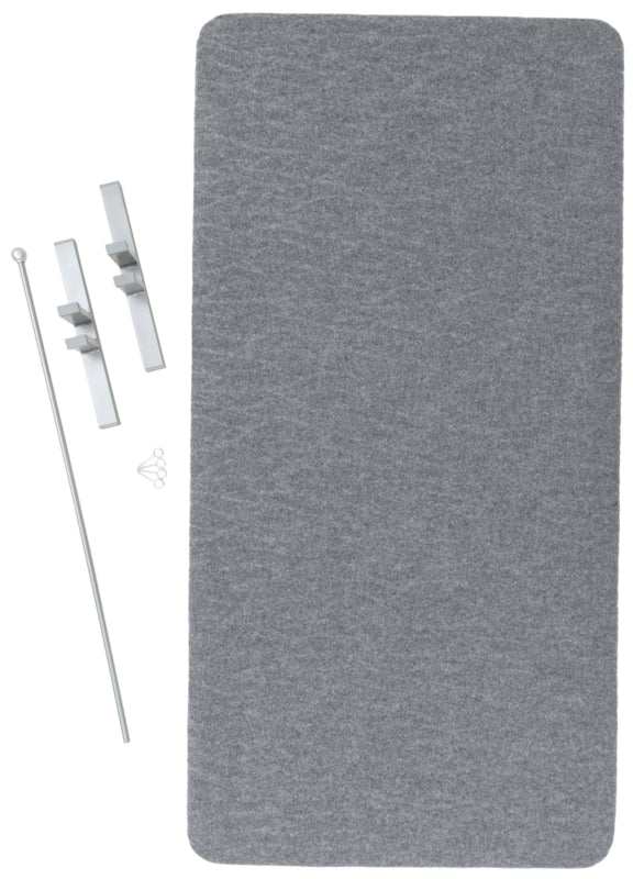 Voor elk scherm: 2 steunen 38 x 4 x 10.3 cm., 4 haken en een stang voor het verbinden van schermen.