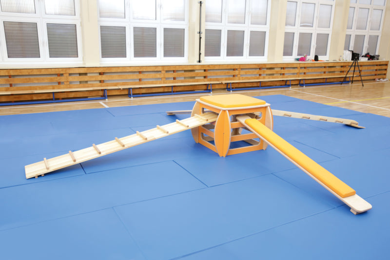 Elementen van verschillende texturen, bedoeld voor lichamelijke oefeningen en revalidatie. Ze stimuleren de sensorische receptoren van de voeten. Parcoursen kunnen worden gemonteerd op gymnastiekblok (092334 en 092335, afzonderlijk verkrijgbaar) of gymnastiekladders. Gemaakt van multiplex (dikte: 25 mm).