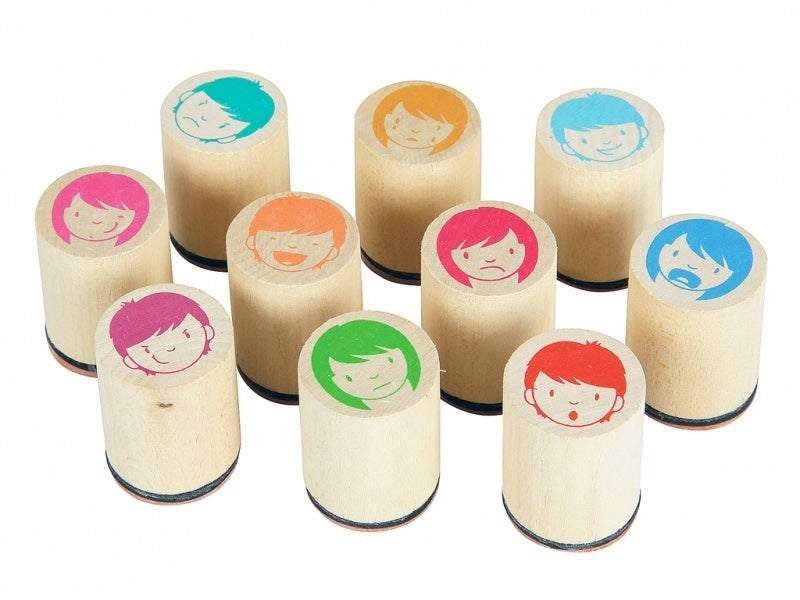 Houten stempels Ø 2,5cm - gezichtsuitdrukkingen