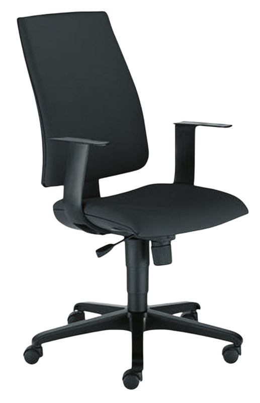 Moderne draaistoel met een brede, comfortabele zitting en ergonomisch geprofileerde, hoge rugleuning. Dankzij het mechanisme biedt ACTIVE IN de mogelijkheid om te draaien, met een rugleuning en zitting in vijf posities. Stoel heeft anti-schokfunctie om te beschermen tegen stoten in de rug. Armleuningen en vijf-poten basis zijn van kunststof. Stof - 100% polyolefine.