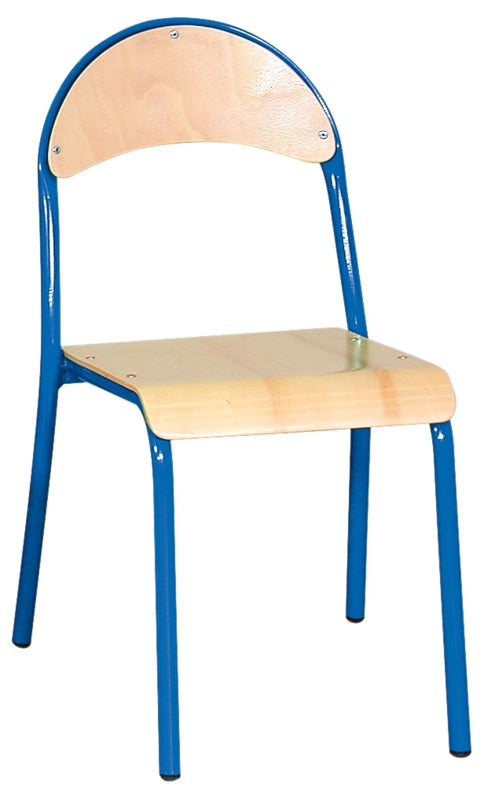 Zitting en licht afgeronde rugleuning van multiplex (dikte: 6 mm voor maten 1-4 en 8 mm. voor maten 5-6).