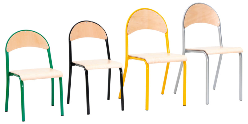 Zitting en licht afgeronde rugleuning van multiplex (dikte: 6 mm voor maten 1-4 en 8 mm. voor maten 5-6).