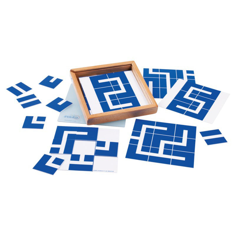 Gebruik de puzzelstukken om de figuren na te maken van de voorbeeld kaarten.