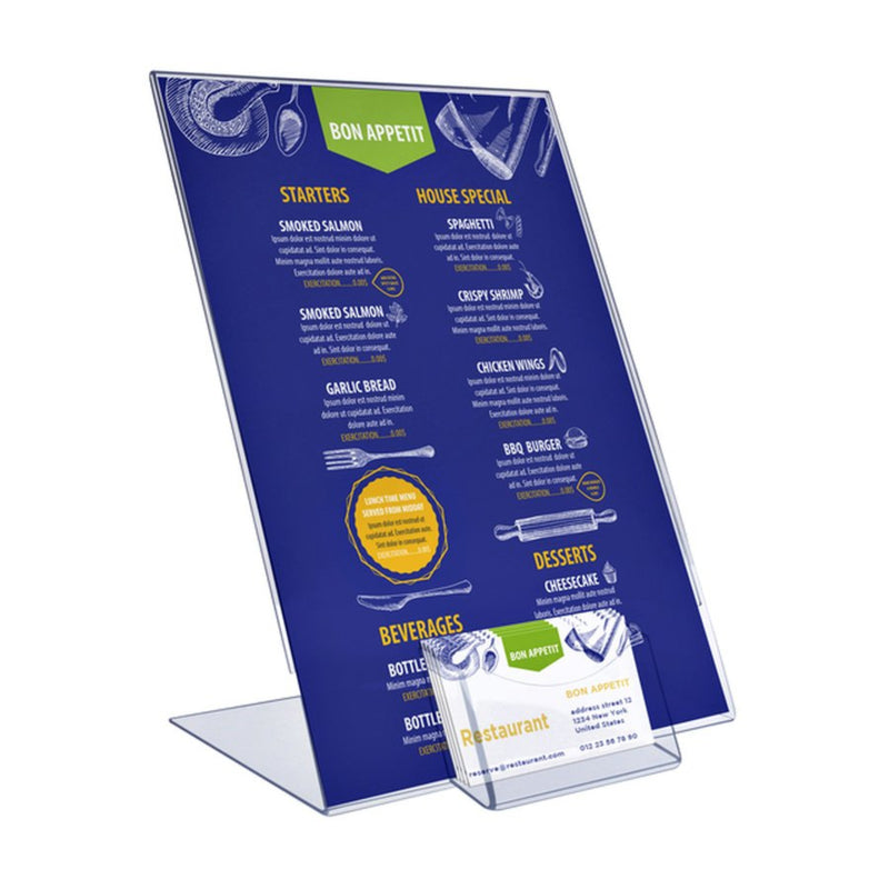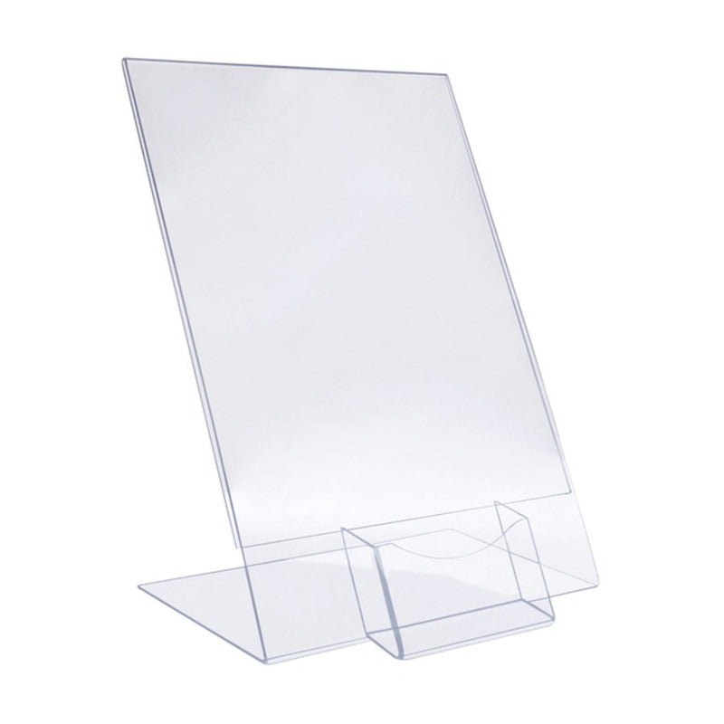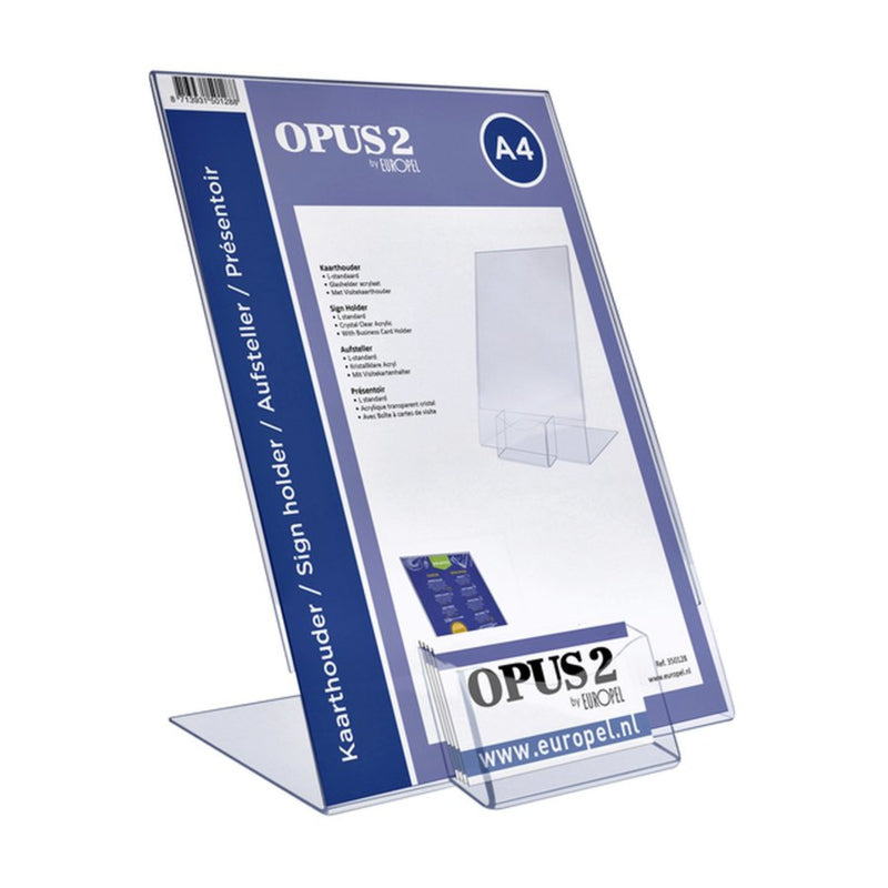 Kaarthouder OPUS 2 L-standaard A4 staand acryl met visitekaartbakje