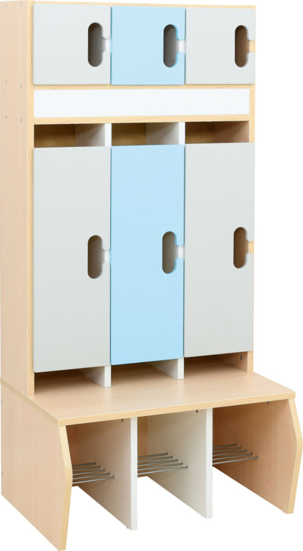 Garderobe voor 3 kinderen gemaakt van gelamineerd spaanplaat in een esdoorn kleur of wit. Metalen haken zijn inbegrepen.