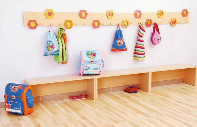 Een kapstok die kan worden aangevuld met een bank (100096, apart verkrijgbaar). Dankzij de kleurrijke applicaties maken de kapstokken de ruimte vrolijk. Gemaakt van gelamineerd spaanplaat in een berken kleur.