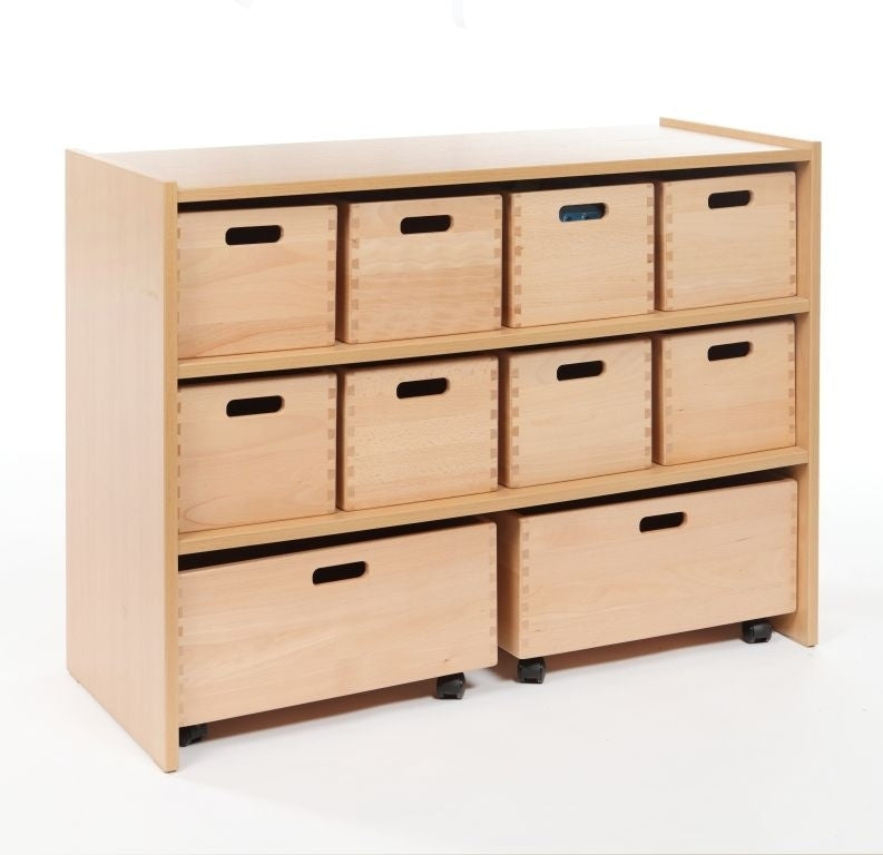 Met 8 massief houten plexi bakken en 2 massief houten rolkisten.