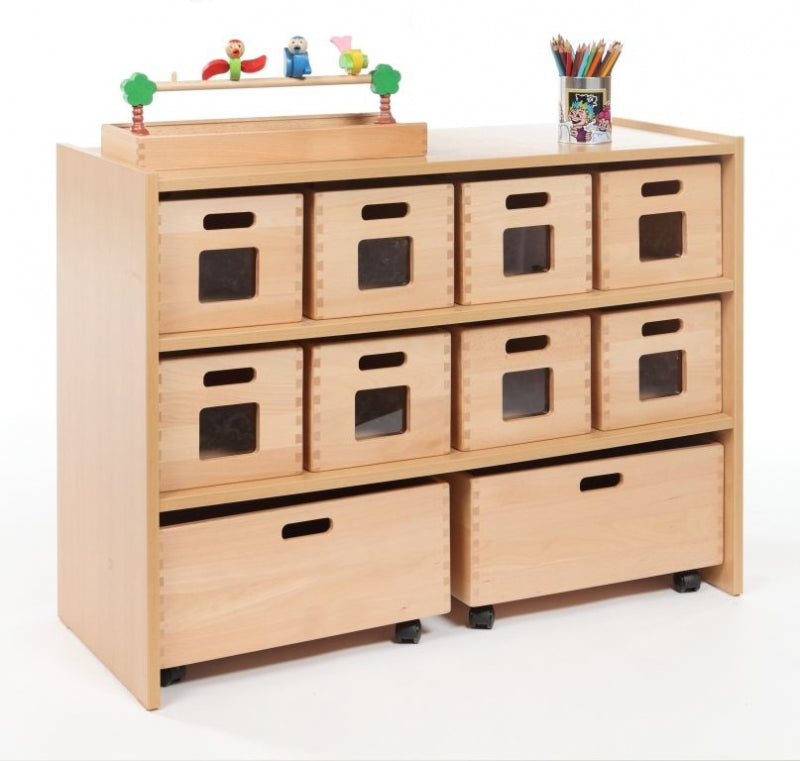 Met 8 massief houten bakken met plexi venster en 2 massief houten rolkisten.
