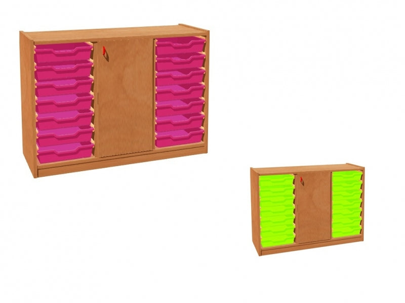 De kast is leverbaar in beuken, maple, wit of berken uitvoering en wordt gemonteerd geleverd.