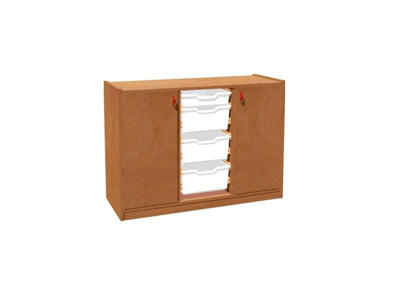 De kast is leverbaar in beuken, maple, wit of berken uitvoering en wordt gemonteerd geleverd.