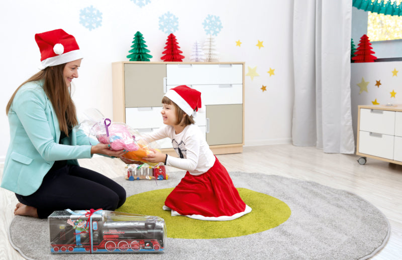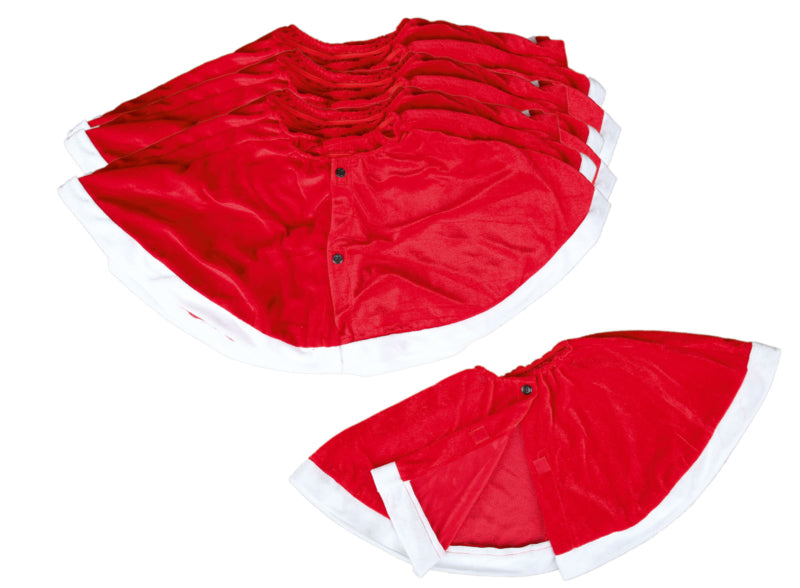 Kerstrokje gemaakt van zachte stof met klittenband (de knopen zijn decoratie). De omtrek wordt gegeven zonder uit te rekken en kan met ong. 15 cm. worden uitgerekt.