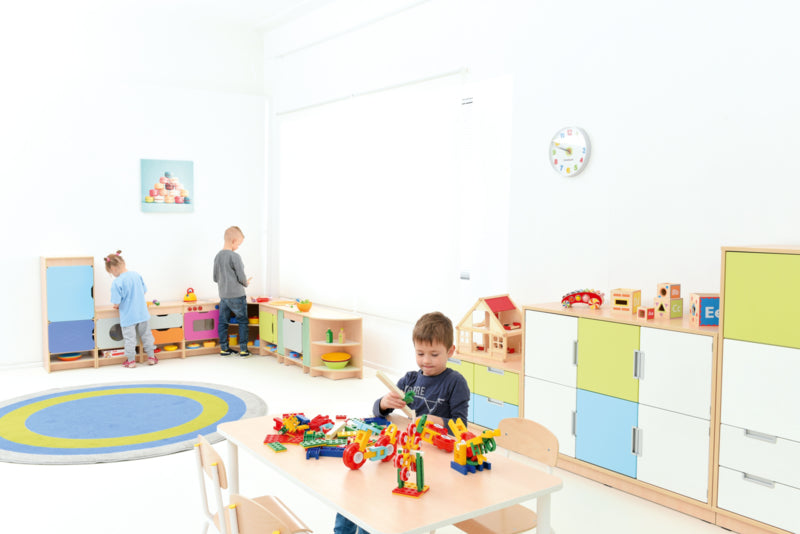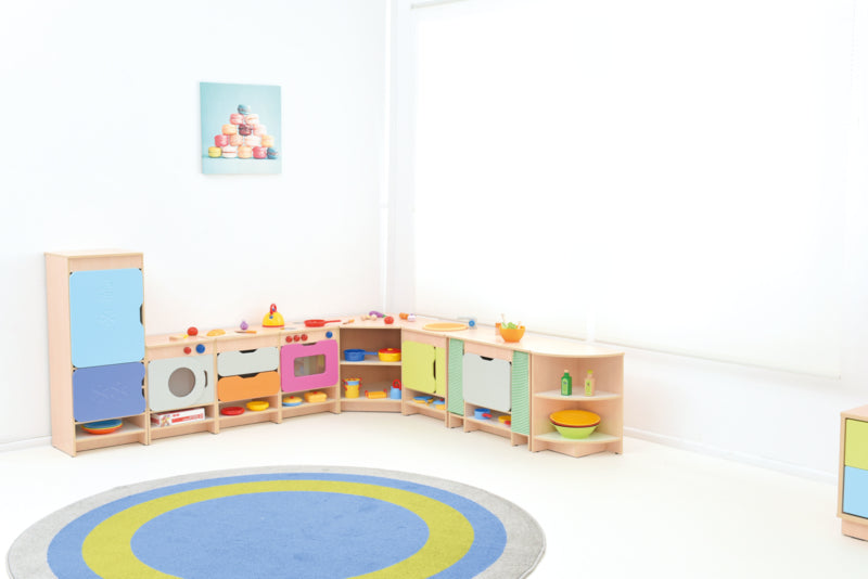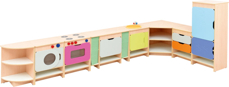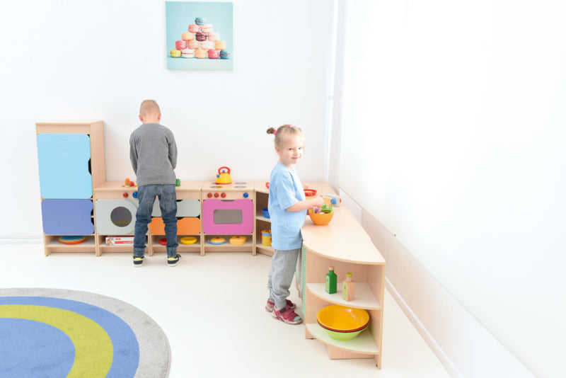 Quadro keukens zijn er om de thuissituatie na te spelen,wat groepsintegratie ontwikkelt. Kinderen communiceren en werken samen tijdens dit fanasiespel.