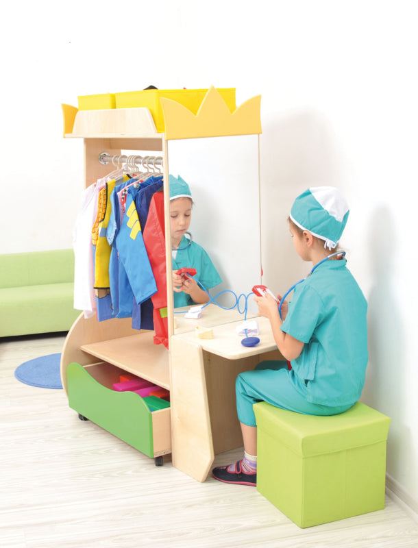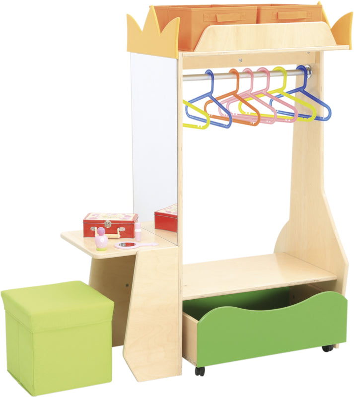 De opbergbak onder een plank en kledingstang maakt het zeer ruim.