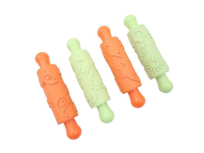 Klei rollers rubber met patronen 4 dlg.