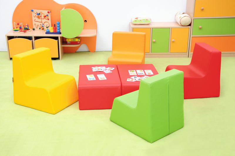 De foam bank/tafel is bekleed met duurzaam ftalaatvrij vinyl.