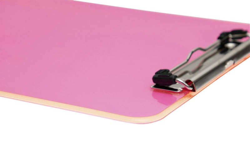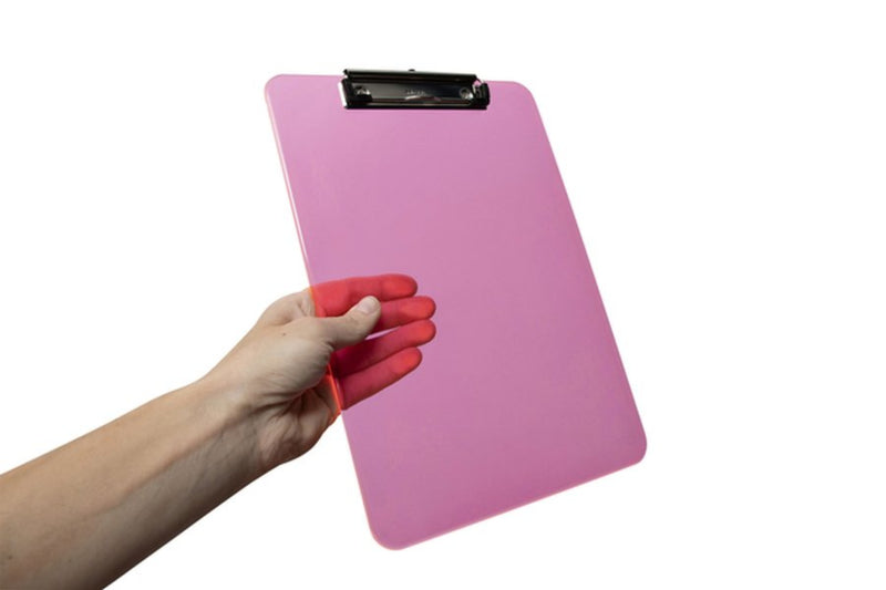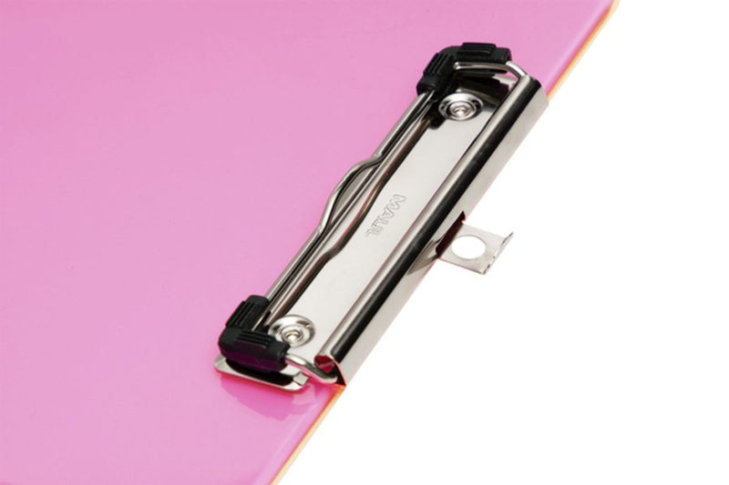- Kunststof klembord met een vlakke beugelklem met grip.