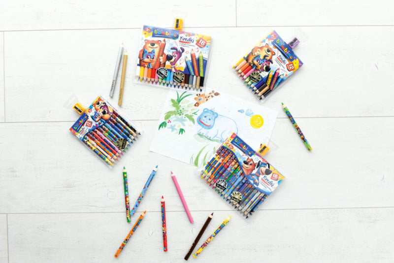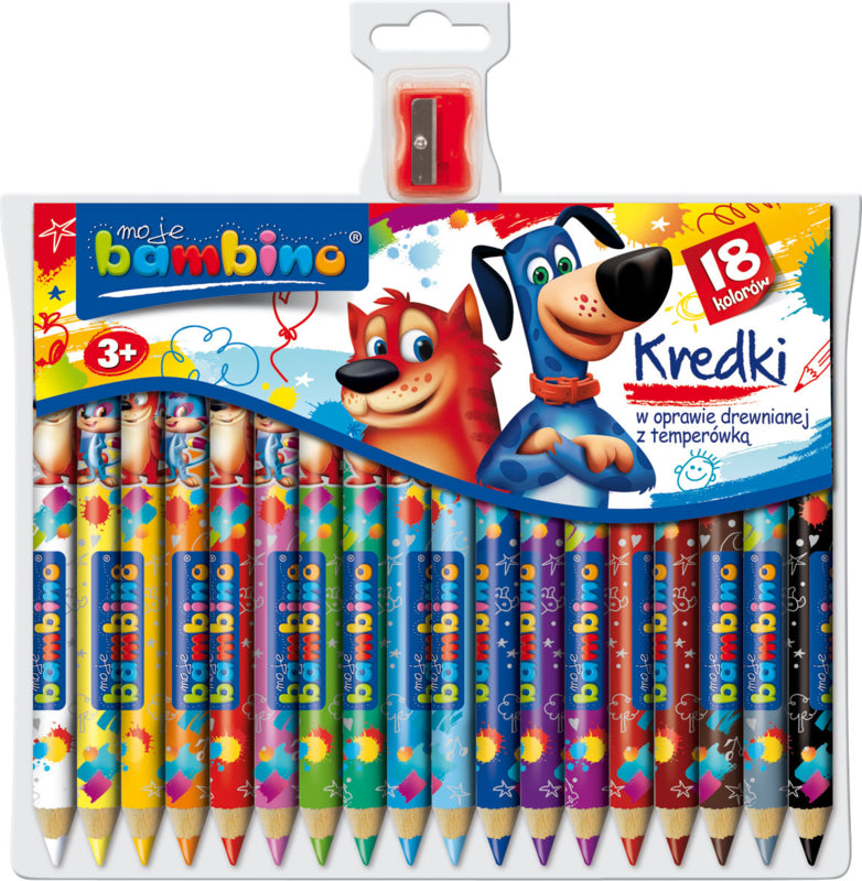18 kleuren in een plastic verpakking, met puntenslijper