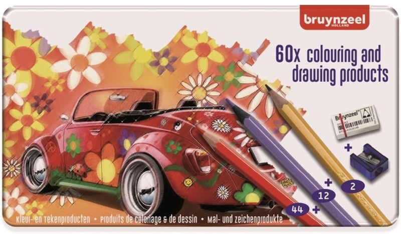 Kleurpotloden Bruynzeel Super Sixties kever in blik 60stuks