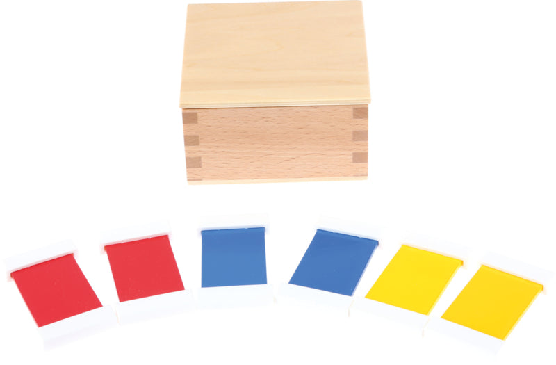 Gemaakt van hout in primaire kleuren.