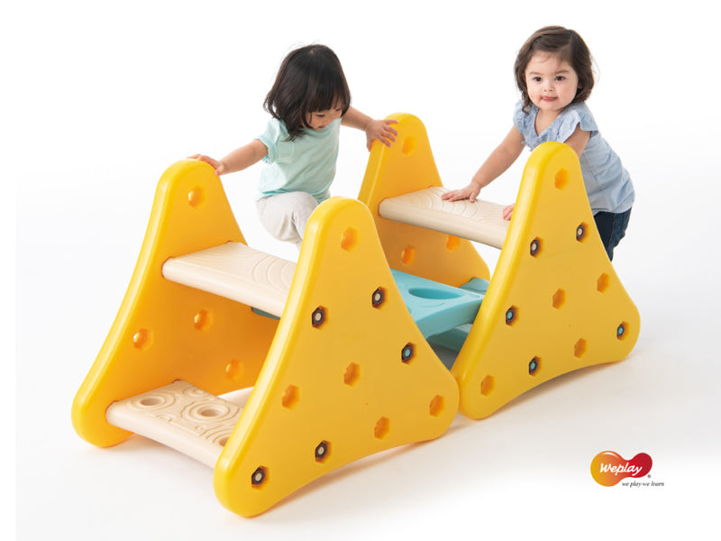 De klimdelen hebben verschillende structuren en verdiepingen om meer houvast te geven.