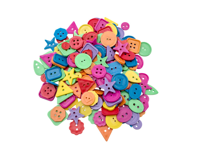 450 gram kleurrijke plastic knoppen voor het maken van verschillende vormen, kleuren en maten. Afmeting: ca. 14 mm tot 25 mm. Deze plastic knutselknopen kunnen worden gebruikt voor een verscheidenheid aan collages en ambachten. Ze zijn ook ideaal voor het aanleren van draadtechnieken.