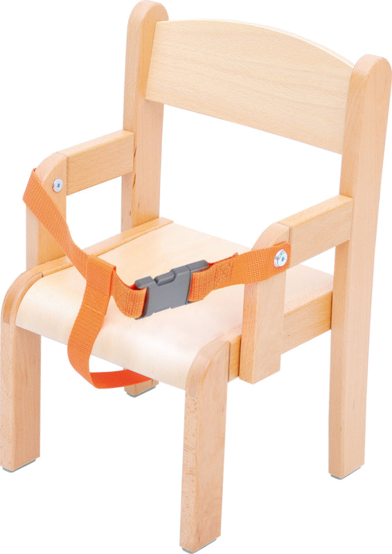 Esthetisch gemaakte en comfortabele stoel met veiligheidsgordel, gemaakt van gelakt beukenhout. Volgens de geldende normen PN - EN 1729-1: 2007 en PN - EN 1729-2: 2012. - hoogte: 46 cm - zithoogte: 21 cm