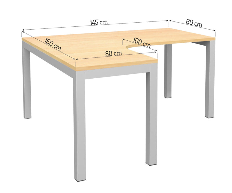 Kvadra hoek bureau tafel 160 cm. links