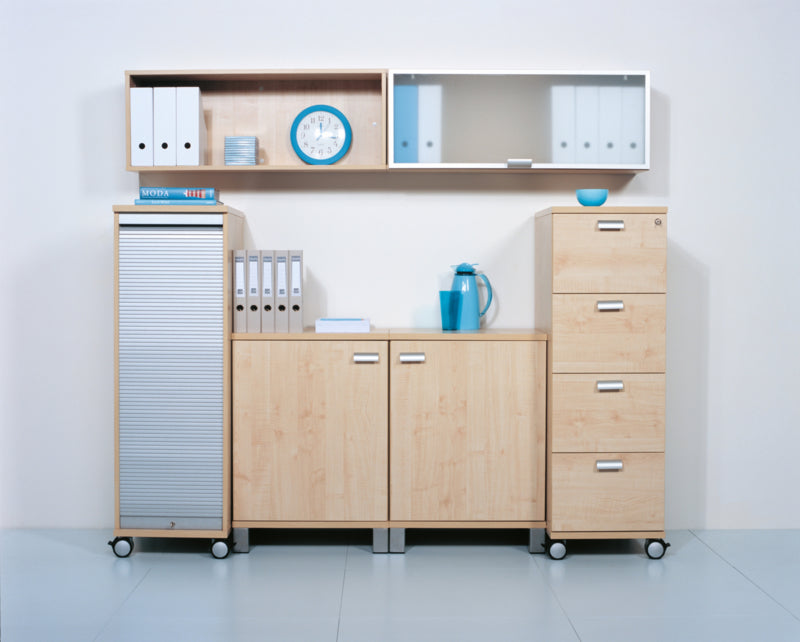 Open hangkast van gelamineerd spaanplaat in een esdoorn kleur (dikte 18 mm.) met randafwerking.
