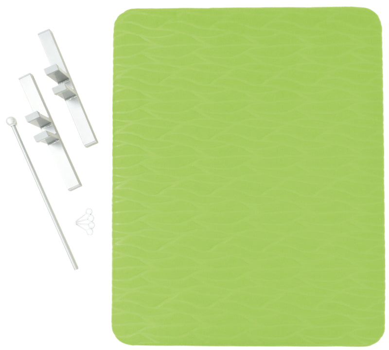 Voor elk scherm: 2 steunen 38 x 4 x 10.3 cm., 4 haken en een stang voor het verbinden van schermen.