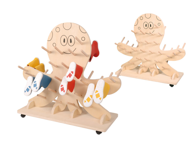 25 paar laarzen kunnen aan deze inktvis te drogen opgehangen worden. De mobiele standaard kan aan twee kanten gebruikt worden en kan naar wens beschilderd of gelakt worden. Incl. watervaste houtlijm om de houten stokken te bevestigen.