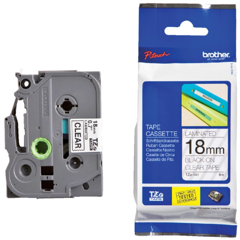 Labeltape Brother P-touch TZE-141 18mm zwart op transparant