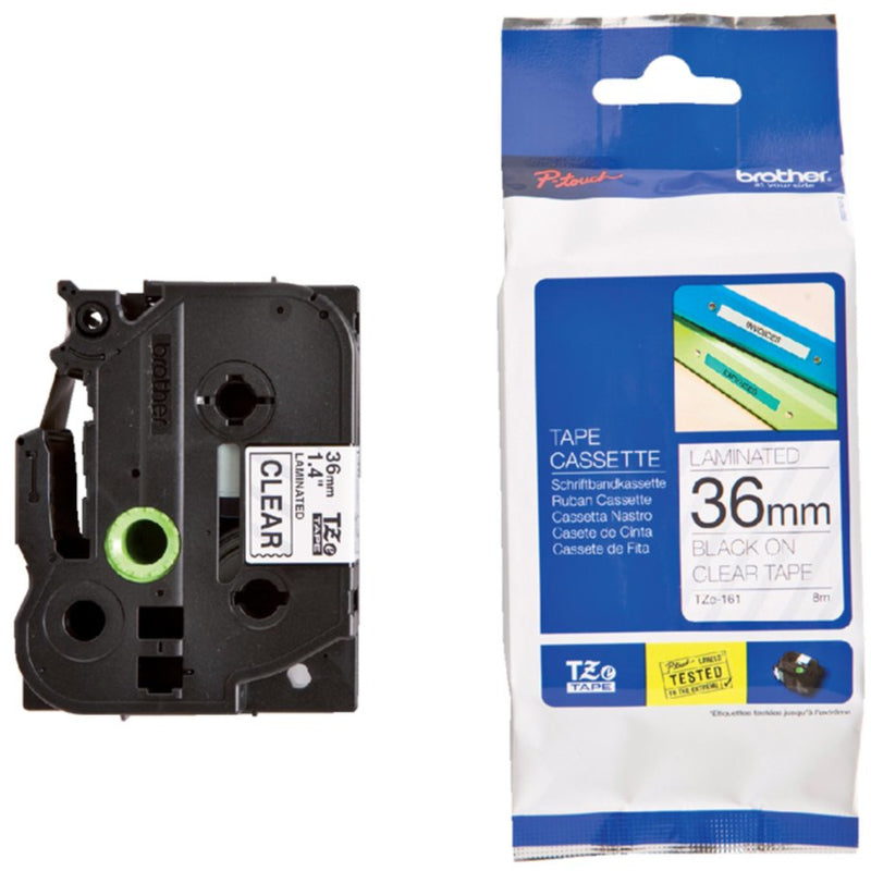 Labeltape Brother P-touch TZE-161 36mm zwart op transparant