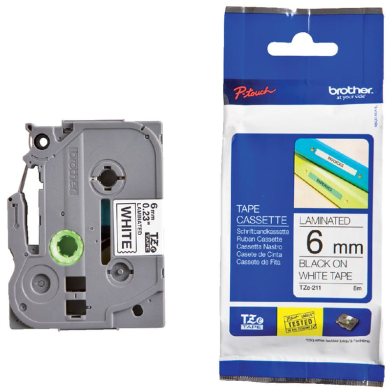 Labeltape Brother P-touch TZE-211 6mm zwart op wit