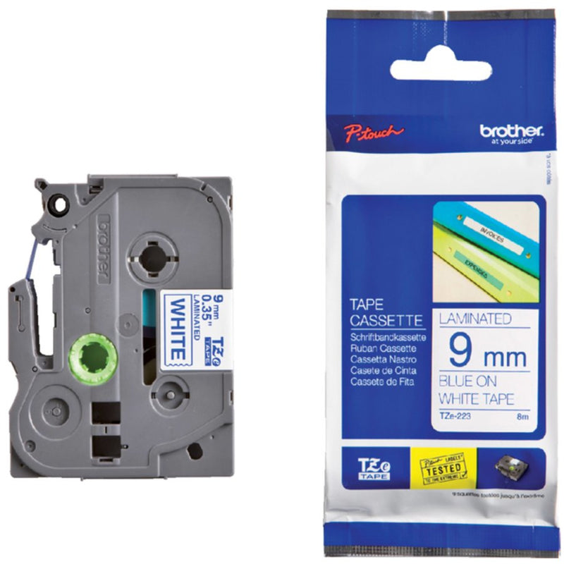 Labeltape Brother P-touch TZE-223 9mm blauw op wit