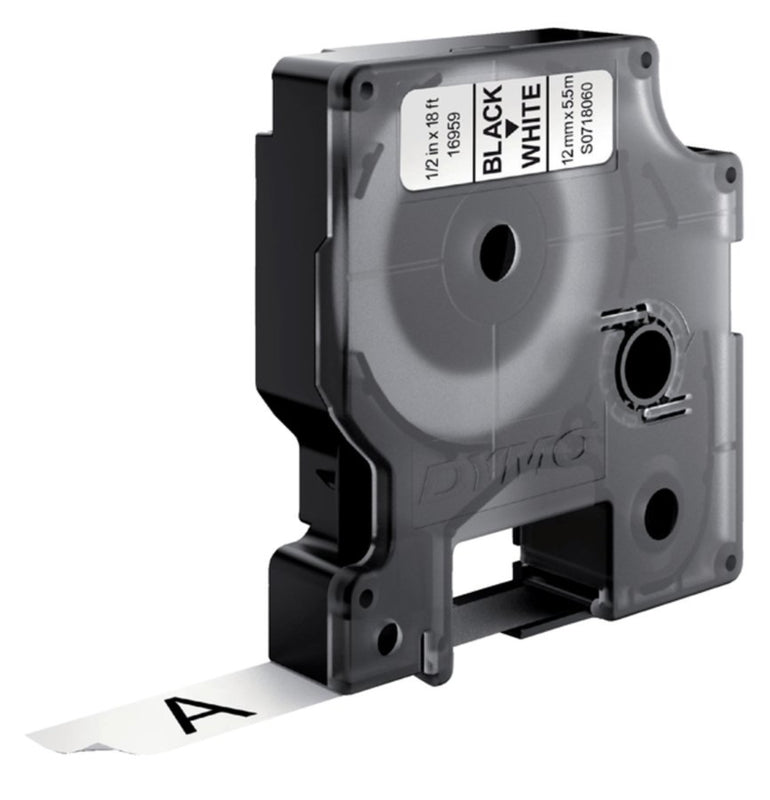 Labeltape Dymo 16955 D1 718060 12mmx5.5m poly zwart op wit