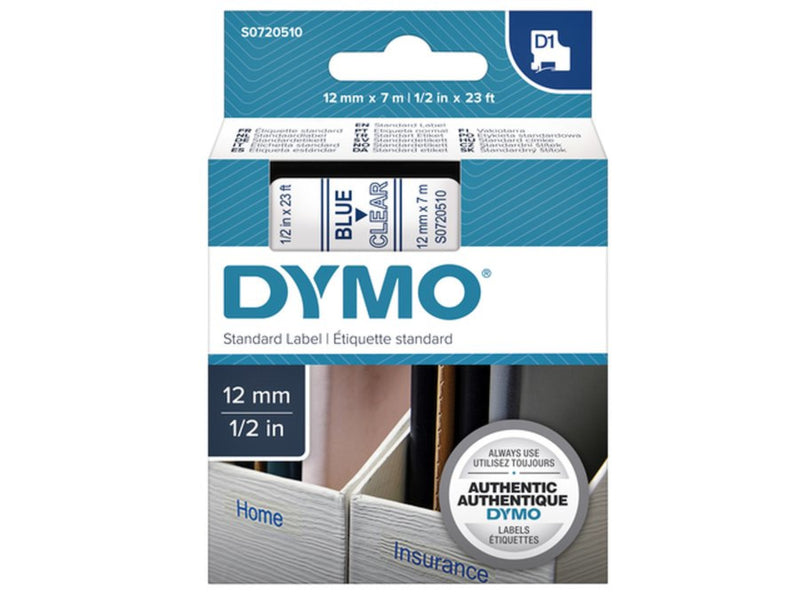 Labeltape Dymo 45011 D1 720510 12mmx7m blauw op transparant