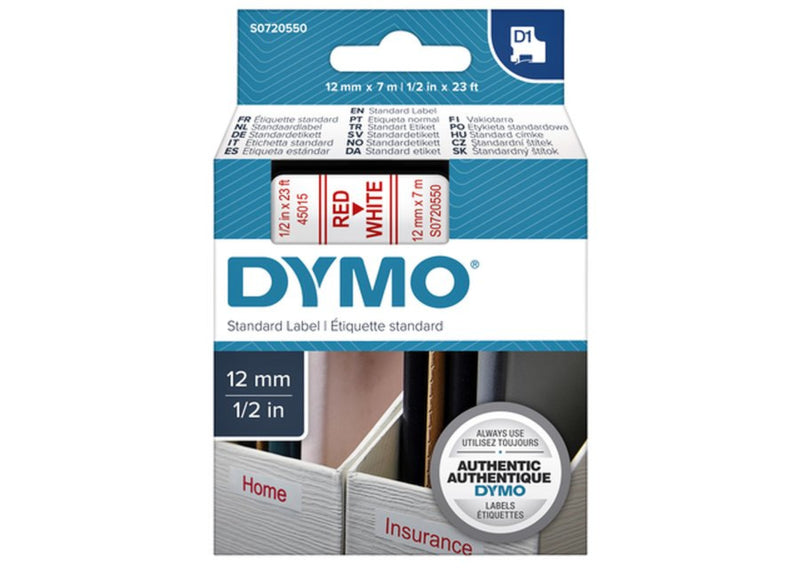 Labeltape Dymo 45015 D1 720550 12mmx7m rood op wit