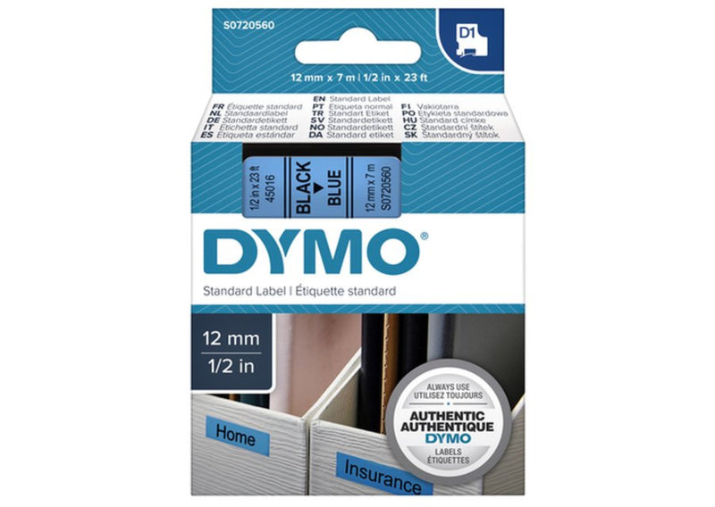Labeltape Dymo 45016 D1 720560 12mmx7m zwart op blauw