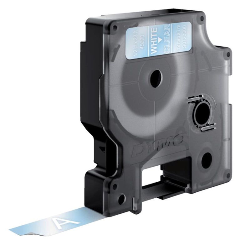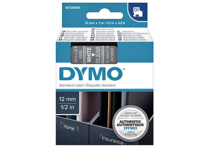 Labeltape Dymo 45020 D1 720600 12mmx7m wit op transparant