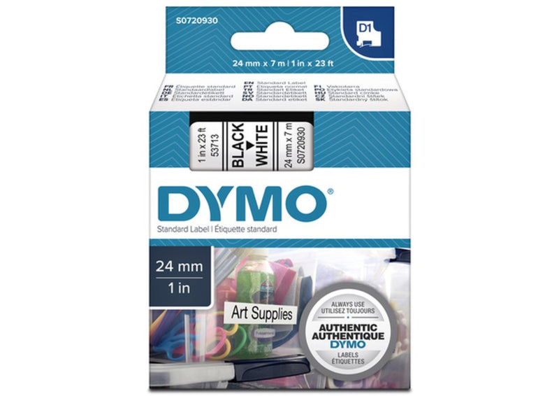 Labeltape Dymo 53713 D1 720930 24mmx7m zwart op wit