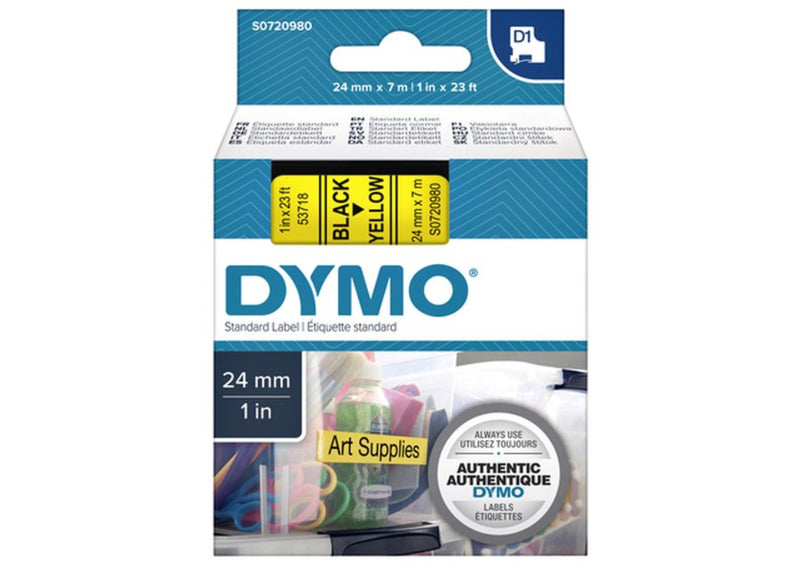 Labeltape Dymo 53718 D1 720980 24mmx7m zwart op geel