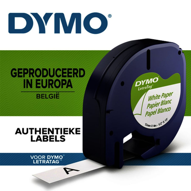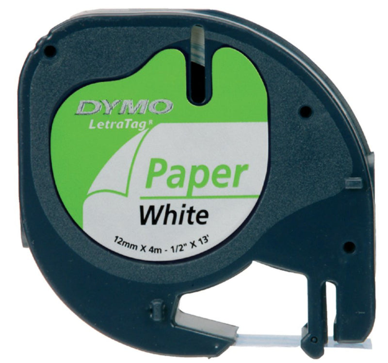 Labeltape Dymo Letratag 91200 papier 12mm zwart op wit