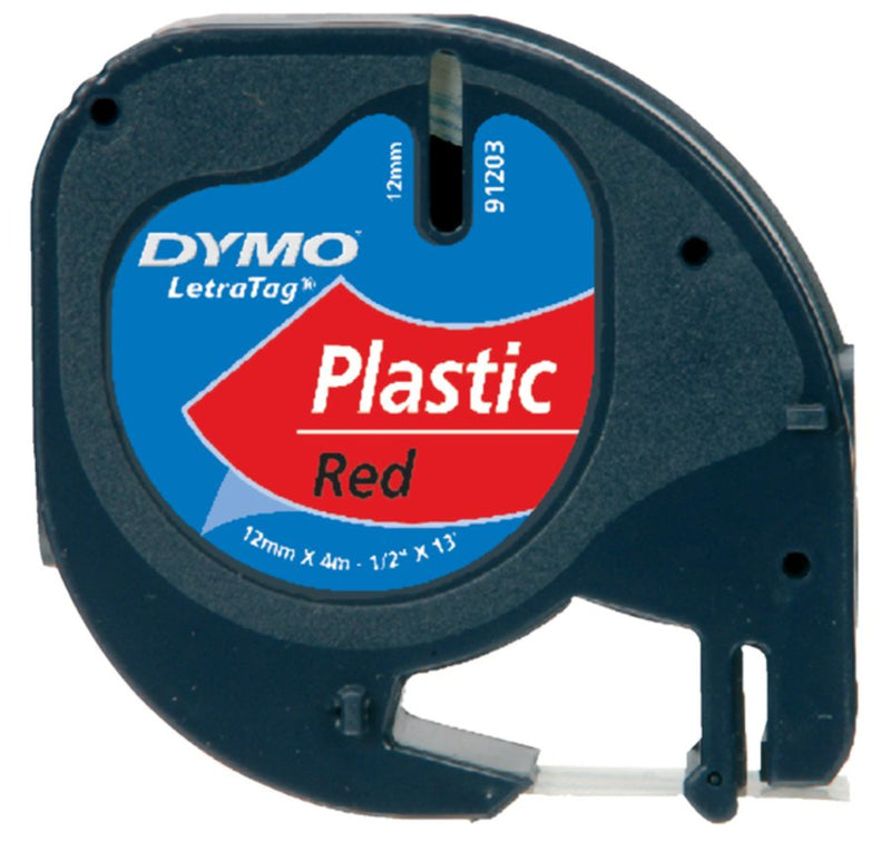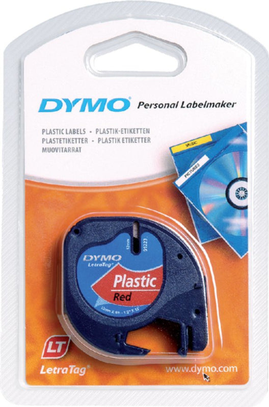 Labeltape Dymo Letratag 91203 plastic 12mm zwart op rood