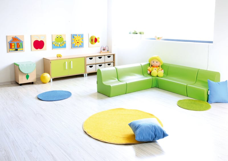 De foam bank is bekleed met duurzaam ftalaatvrij vinyl.