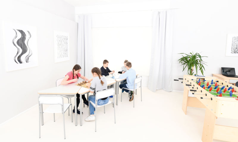 Zitting en rugleuning van massief kunststof. Metalen frame, gepoedercoat. Stapelbaar (max. 8 stuks).
