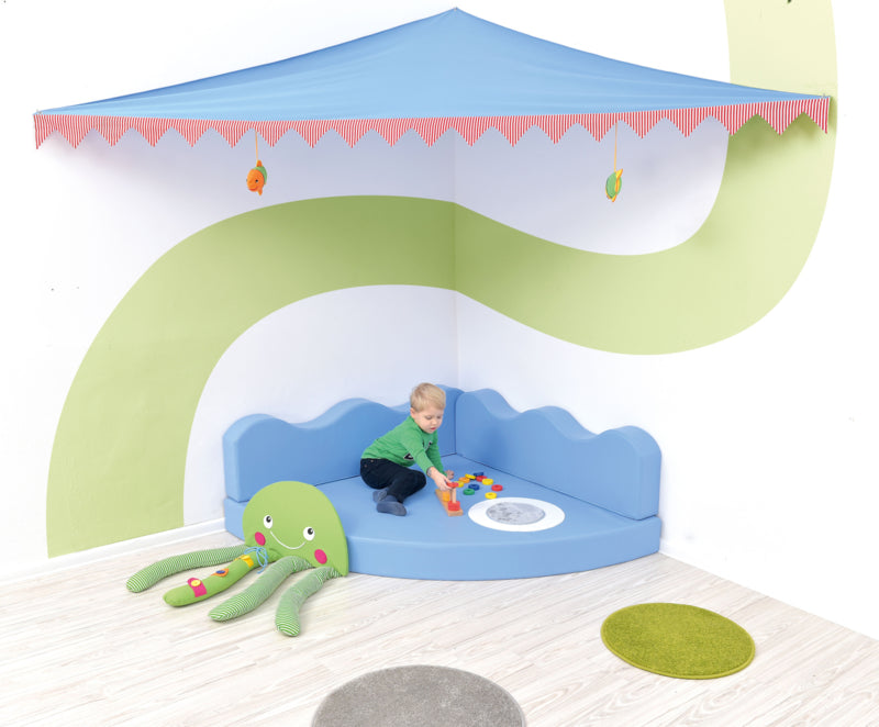 Luifel voor speelhoeken van schuim, gemaakt van katoen. Wordt aan de muur bevestigd (bevestigingselementen zijn niet inbegrepen). Aangegeven montagehoogte: 170 cm.