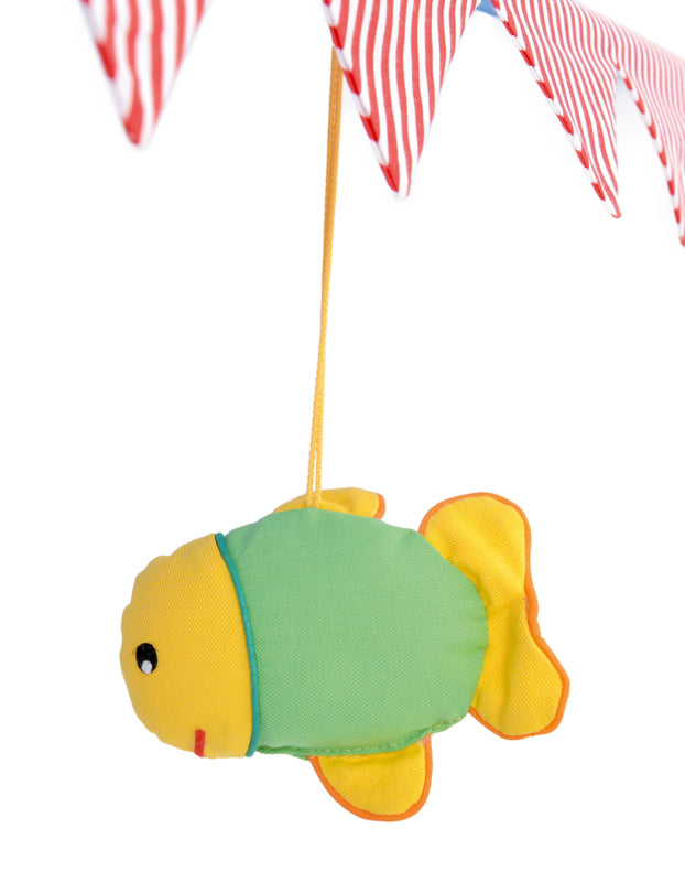 - 2 vissen/bijen, afm. 10 x 15 cm hangen aan touwen, lengte: 16 cm