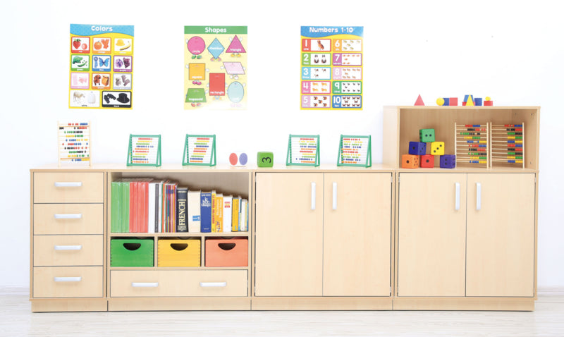 Kasten van gelamineerd spaanplaat in berkentint (dikte: 18 mm), met ABS-randafwerking.
