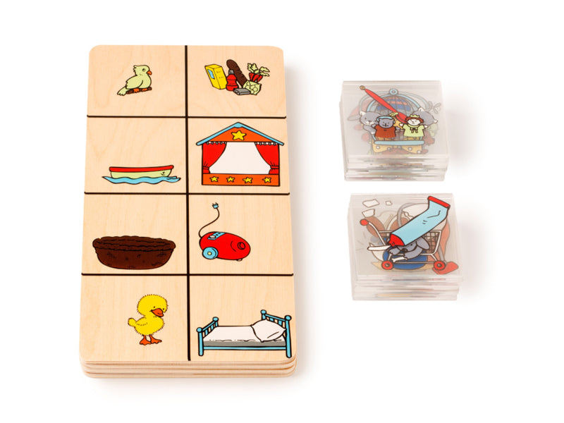 Inhoud: 4 taakkaarten, 32 transparante fotokaarten, gebruiksaanwijzing.